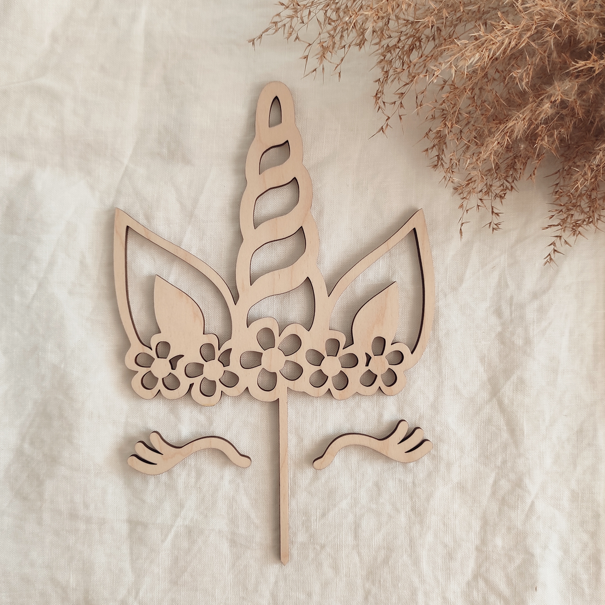 Drevený zápich na tortu v tvare jednorožca skvelo doplní tématickú detskú tortu alebo koláč. Zápich je vyrobený z kvalitnej preglejky hrúbky 4mm.