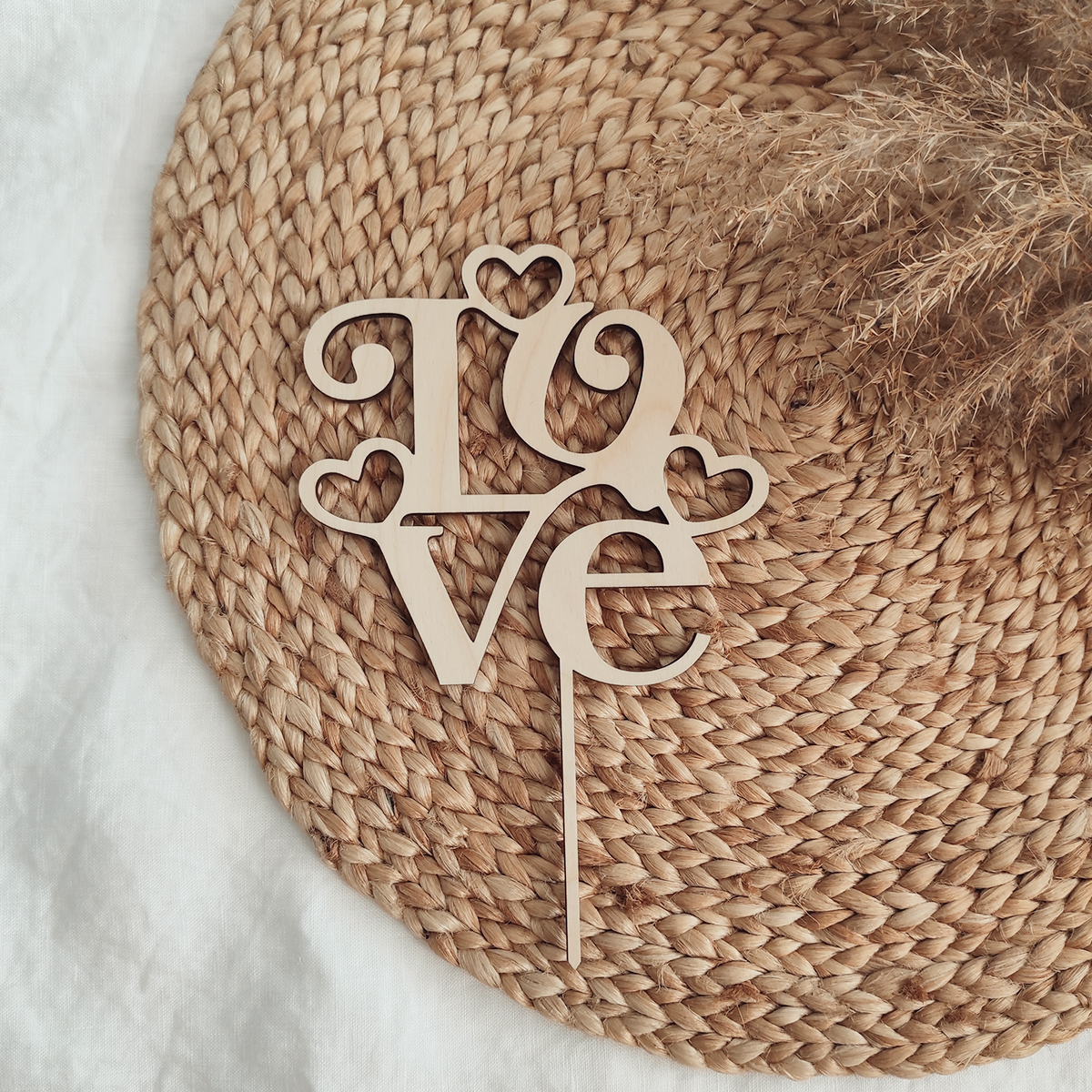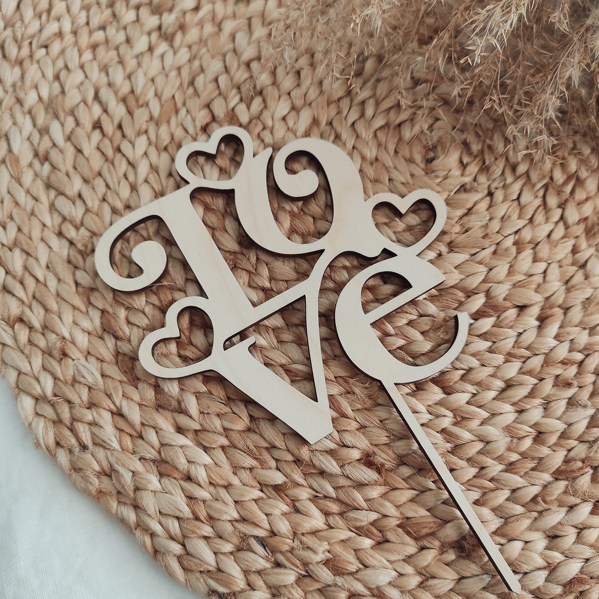 Drevený zápich na tortu s textom LOVE