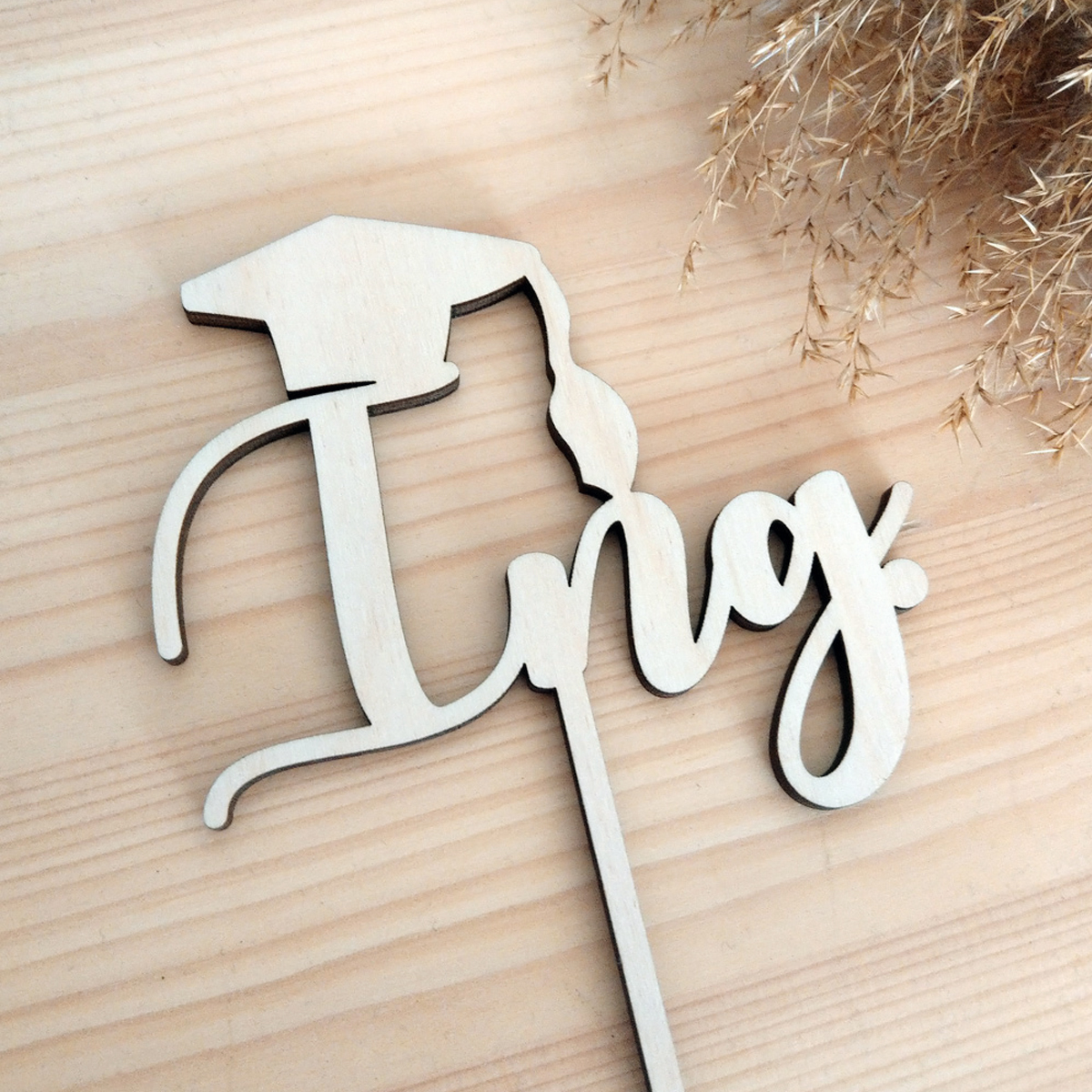 Drevený zápich na tortu s titulom Ing. môžte využiť na tortu a koláče alebo ako dekoráciu k oslave promócií a úspešného ukončenia štúdia. Zápich je vyrobený z kvalitnej preglejky hrúbky 4mm.
