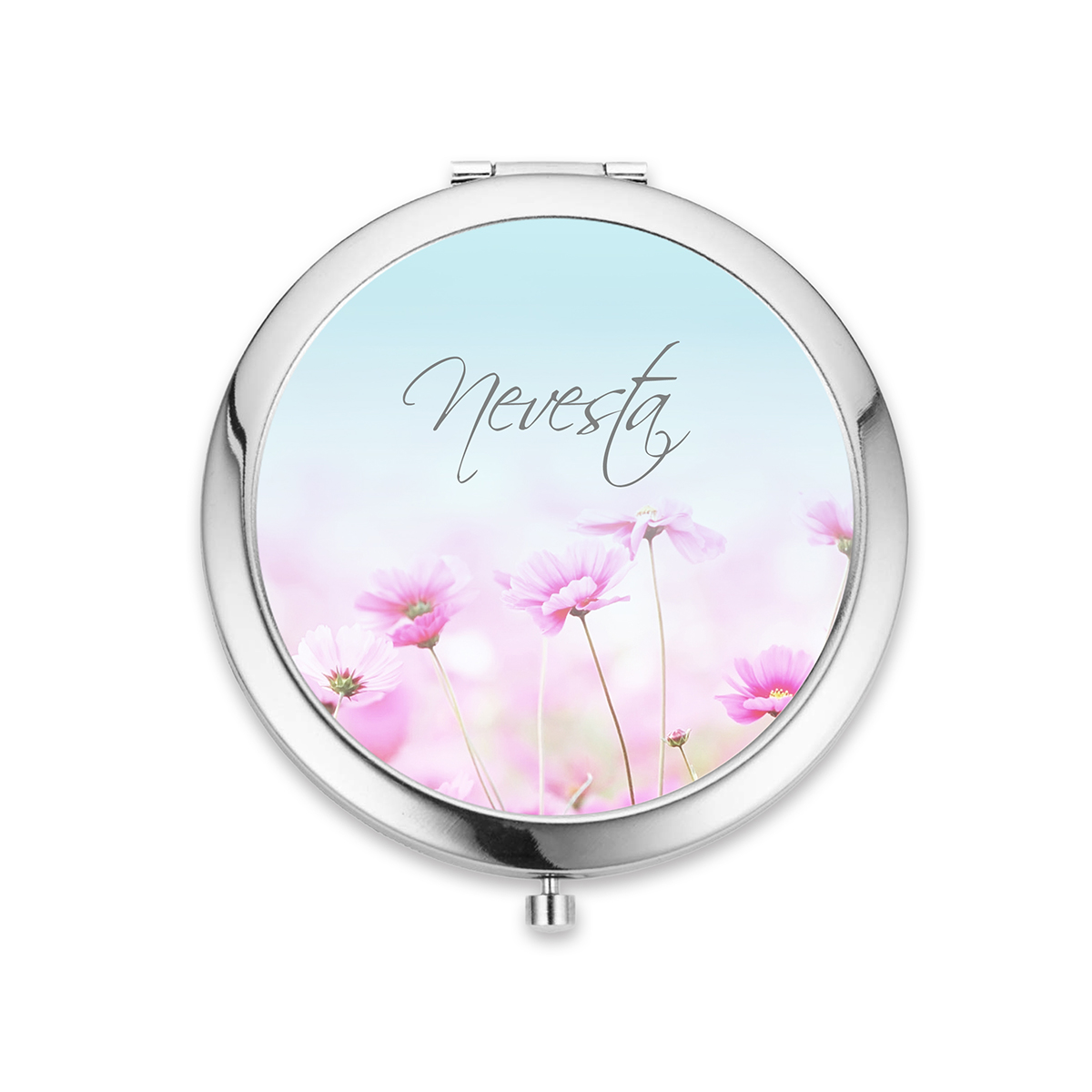 Kvalitné zrkadielko do kabelky s jednoduchým otváraním pomocou stlačenia. Zrkadielko je milým aj praktickým darčekom na rôzne príležitosti - napr. pre družičky, nevestu, svedkyňu, svadobné mamy, kamarátky, maminku, sestru a pod. Vo vnútri sú dve zrkadielka. Zrkadielko je z bižutérneho kovu bez obsahu niklu, olova a kadmia a grafický obrázok je pod vrstvou živice. Obrázok má priemer 57mm.